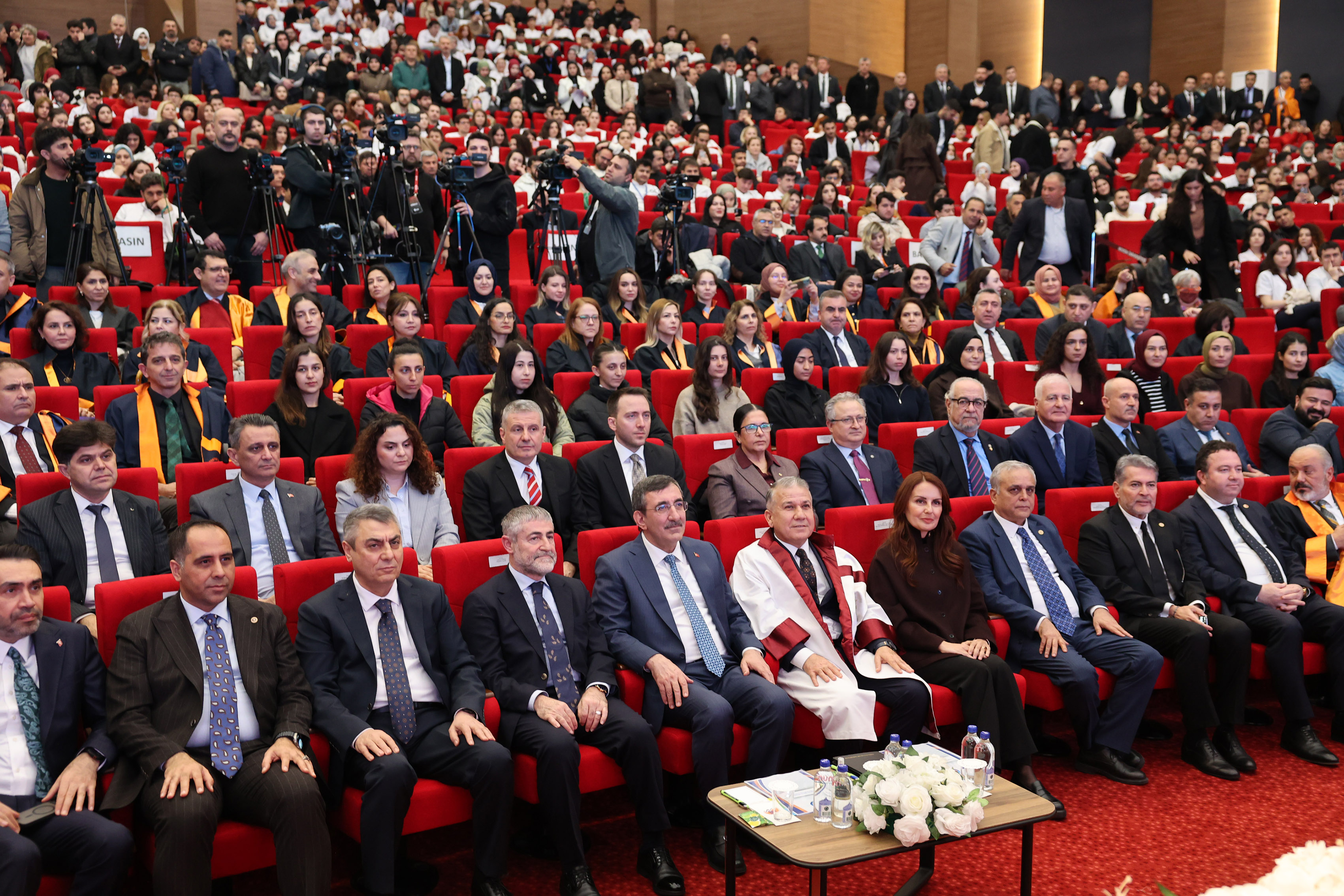 Törende konuşan Cumhurbaşkanı Yardımcısı Cevdet Yılmaz, üniversitelerin eğitim ve araştırma fonksiyonlarının yanı sıra “kalkınma” misyonuna vurgu yaptı. Bilginin sadece üretilmesinin yeterli olmadığını, bu bilginin ekonomik ve sosyal faydaya dönüştürülmesi gerektiğini belirten Yılmaz, Mersin Üniversitesi’nin şehirle kurduğu bağı bu noktada çok değerli bulduğunu ifade etti. Gençlerin istihdamına yönelik 450 milyar liralık kaynağın önümüzdeki üç yılda devreye alınacağını duyuran Yılmaz, yükseköğretimin Türkiye’de son 23 yılda geçirdiği yapısal dönüşüme ve öğrenci barınma imkanlarındaki artışa dikkat çekti. Ayrıca sağlık endüstrilerinde yerlileşme hedeflerini vurgulayarak, temeli atılan Eczacılık Fakültesi’nin yerli ilaç ve tıbbi cihaz üretiminde stratejik bir rol üstleneceğini belirtti.